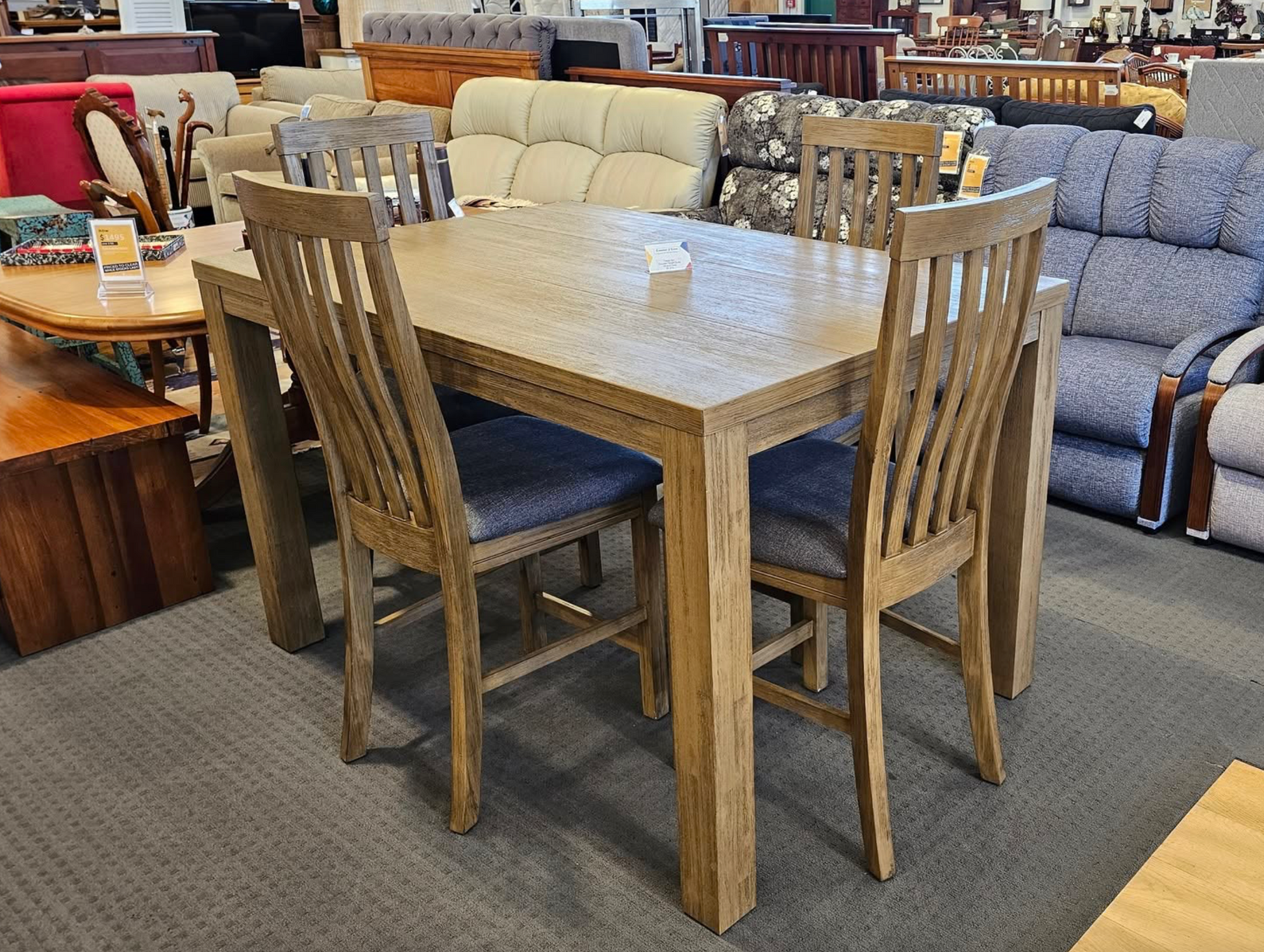 Construction: Brushed Acacia Timber Warranties: 2 years, 1 year: upholstery Table Dimensions: L1520 x W1015 x H920 mm Chair Upholstery: Fabric Assembly: Some required Country of manufacture: Vietnam